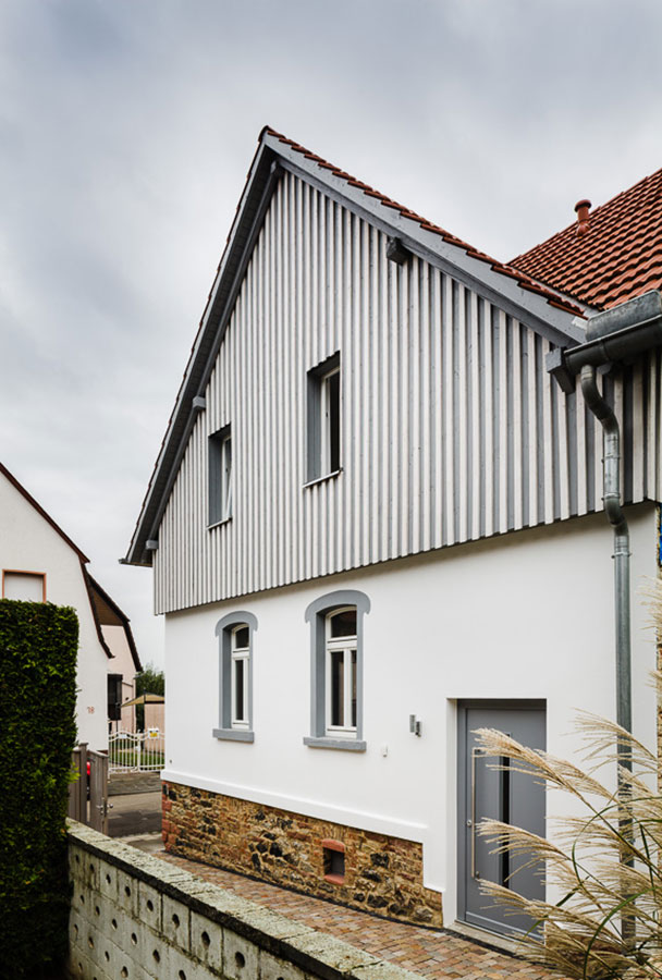 Die Liegenschaft „Am Herrengarten“ in Friedberg hinter dem Bahndamm beherbergt ein historisches Gründerzeithaus aus dem Jahr 1904. Die Bauherren haben uns über Xing kontaktiert und mit einem viel zu kleinen Budget überrascht. Dennoch haben wir uns der Aufgabe angenommen und unser Bestes für den Erhalt der historischen Bausubstanz und der Herstellung von modernem Wohnraum für das junge Paar gegeben. Als erstes wurden eine ominös große Garage und ein Erweiterungsanbau aus den 50er Jahren dem Erdboden gleich gemacht. Das Ergebnis: weniger Quadratmeter für den Ausbau und vor allem mehr Wohnqualität durch jede Menge Sonnenschein in den alten vier Wänden. Danach kamen eine Dachsanierung, neue Fenster mit Segmentbögen sowie aufgeweitete Türdurchgänge und ein neuer Innenputz. Moderne Möbel und eine Küche samt Kochinsel in Hochglanz-Weiß kontrastieren die historische Bausubstanz mit seinen rohen Mauerwerkswänden mit Kalkschlämme, den geschliffenen Fichtedielen und der originalen Treppe mit Patina der letzten 100 Jahre. Leider ist uns Dank zahlreicher Schichten von Dispersion der Aussenputz kaputt und damit verloren gegangen, weshalb das Budget schließlich nicht mehr reichte, das Projekt tatsächlich fertigzustellen. Dafür kontrastiert die eine fertiggestellte Fassade wie Innen die alte Bausubstanz. Das Projekt zelebriert so unabsichtlich die besondere Spannung zwischen Alt und Neu, welche den besonderen Reiz ausmacht mich in der Denkmalpflege zu engagieren. Es ist glaube ich mein Lieblingsobjekt, gerade weil es nie fertig geworden ist. Eine ganz besonders wertvolle Erfahrung. P.S.: Es gibt gar keinen Denkmalschutz auf dem Gebäude! |
