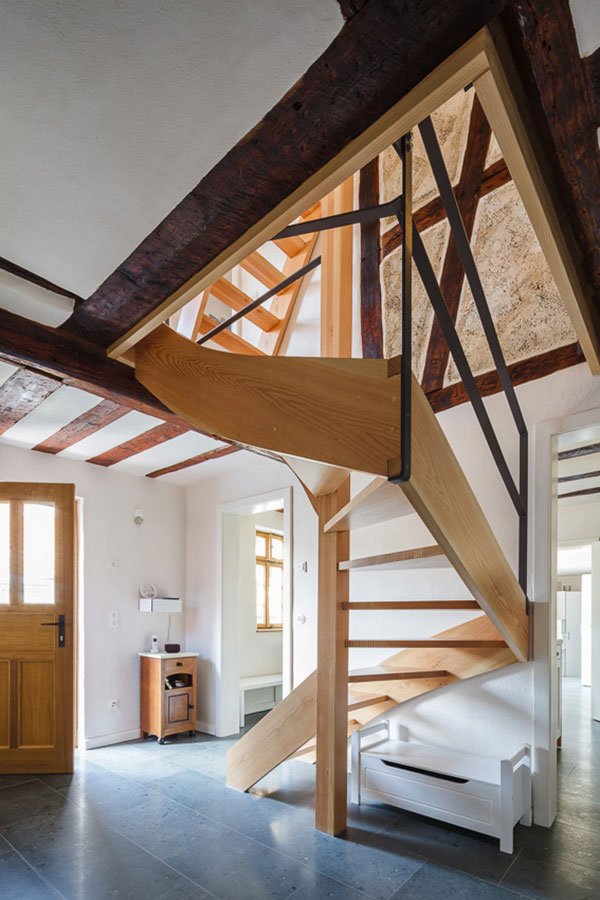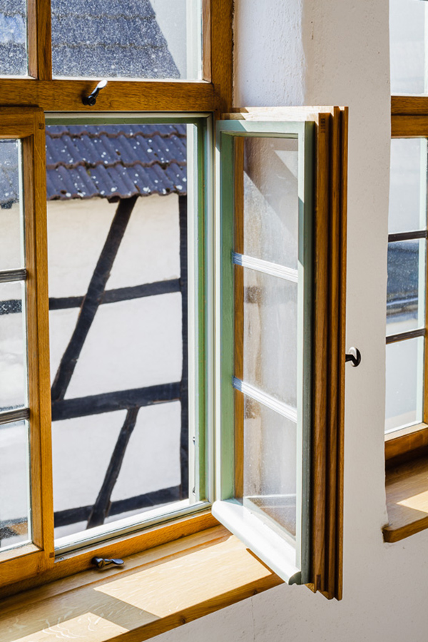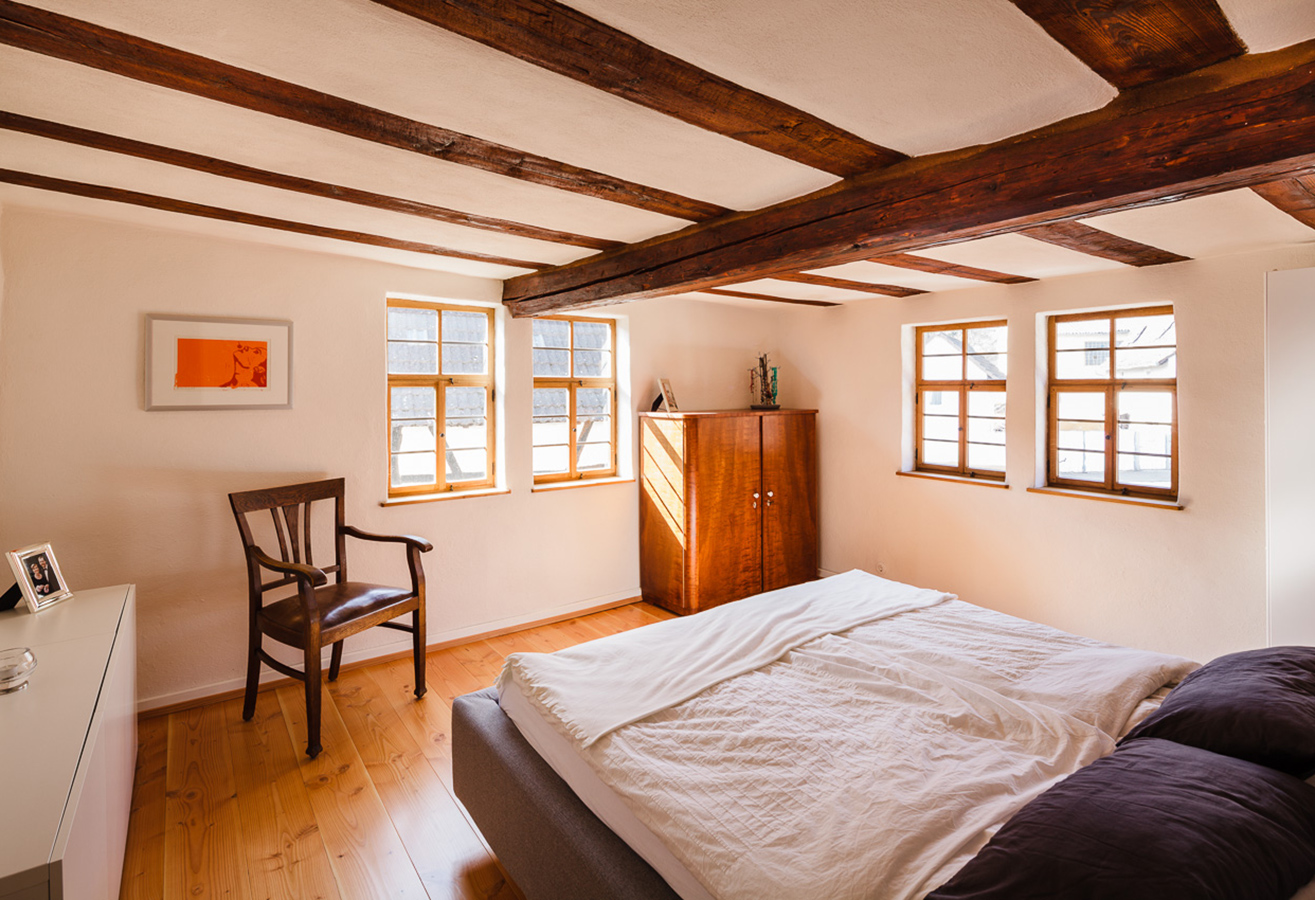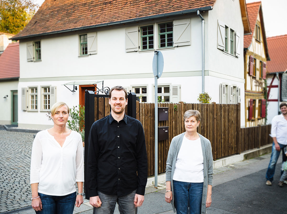 Liederbach ist ein in seinen historischen Wurzeln gut erhaltener Ort. Deutlich kann man die Altsiedlung Niederhofheim mit seinen klassischen Hakenhofreiten im Stadtgrundriss erkennen. Der städtebauliche Bestand galt als Grundlage für die Neukonzeption des Wohnhauses. Der 3-zonige Fachwerkbau aus 1769 wurde umfassend entkernt und fachgerecht mit Lehm, Kalk und Holz wiederaugebaut. Geachtet haben wir darauf, dass das historische Bild wieder herausgearbeitet wurde... die Baustelle wurde von Phase zu Phase optisch älter. Die Fassade wurde in Ihre Bauabschnitte unterteilt, das Obergeschoss steht noch mit seiner barocken Ordnung und dazugehörigen Fenstern für den Ursprung des Hauses. Das Erdgeschoss für die wohl erste große Sanierungsphase, bei dem Fachwerk aus- und Mauerwerk eingebaut wurde. Dabei ging man auch bei den Fenstern mit der Zeit. Ganz neu, jedoch in seiner Erscheinung gar nicht prätentiös, wurde der Wohnbau um ein fehlendes Nebengebäude für Abortanlagen, Waschplatz und Waschküche erweitert. Somit ist die historische Struktur vom schädlichen Wasser befreit und ein moderner und fachgerechter Aufbau der Nassbereiche möglich geworden. |